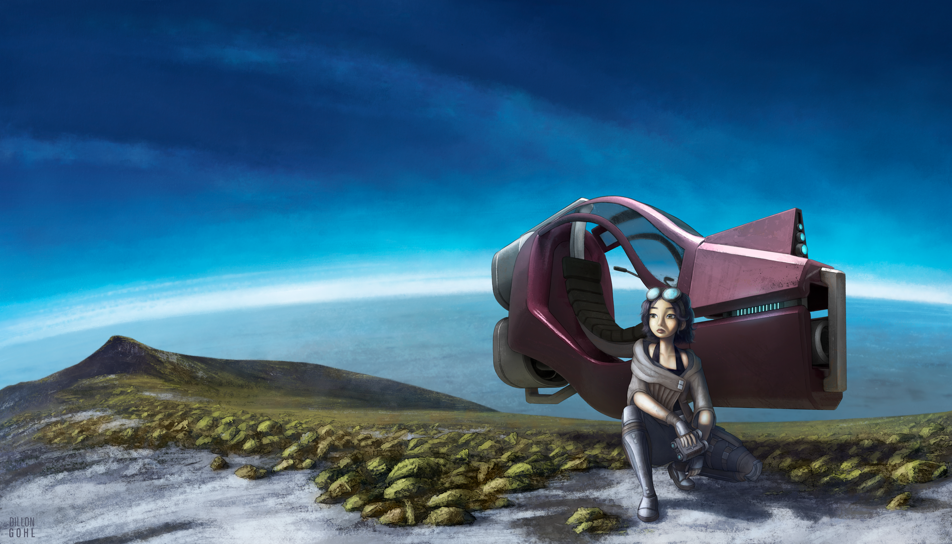 I channeled some Ghibli and Star Wars vibes into an environment inspired by Iceland’s mossy lava fields. The speeder was modeled in Autodesk Maya and the painting was done in Adobe Photoshop.